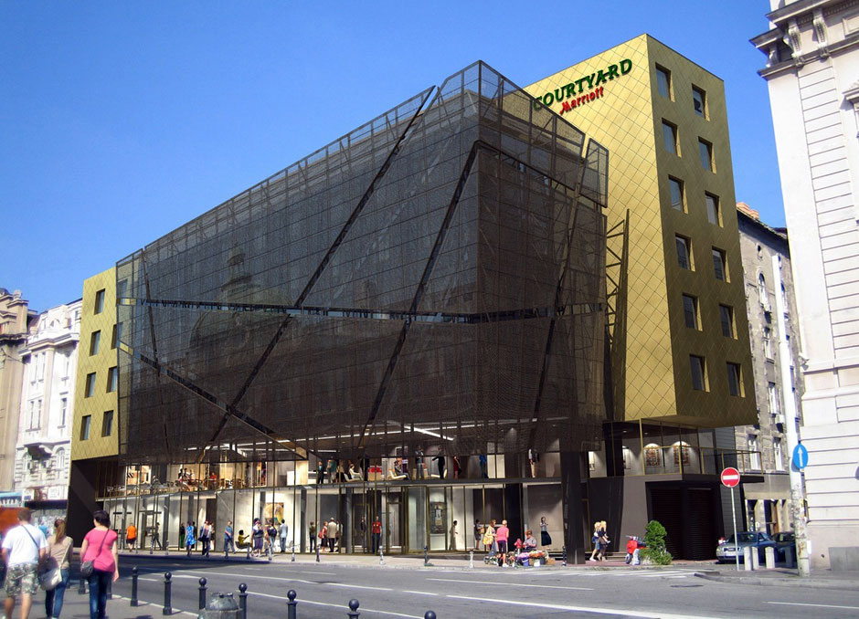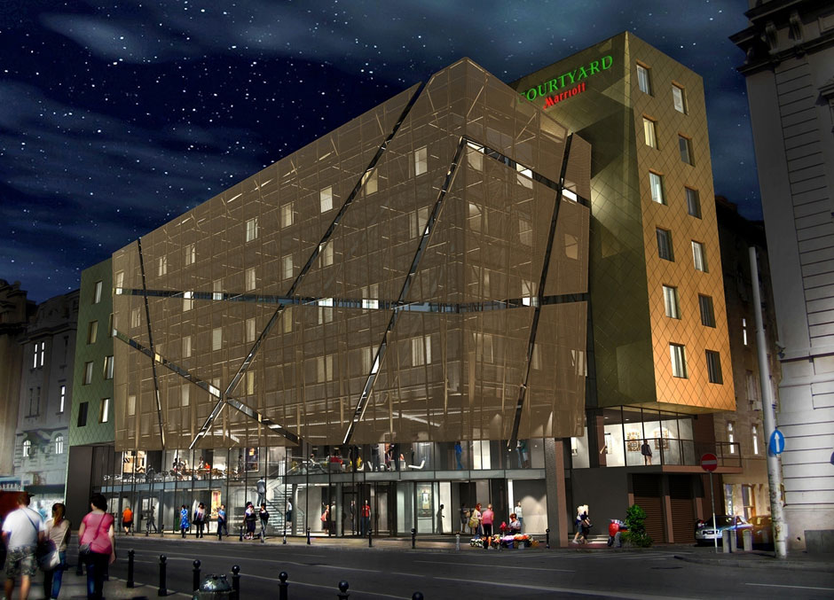 New hotel from Marriott hotel chain is designed mainly for business people and tourists. It will significantly improve the quality of accommodation facilities in Belgrade. Hotel consists of ground floor, seven aboveground and two underground floors, that will have 114 hotel rooms, a conference hall, restaurant and other amenities.